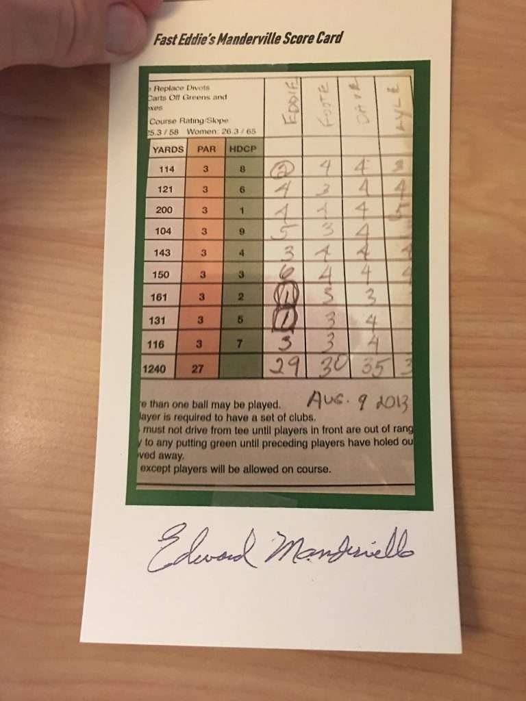 One thing is sure, even at age 85, you DO NOT want to play “Fast Eddie” for money. I have known Eddie Manderville for almost 45 years. I am proud to call him a friend.