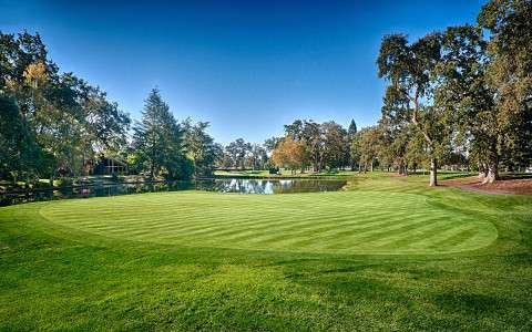 I learned that the classy old course was designed by Sam Whiting in 1928. He worked under the guidance of the original owners of Sonoma Mission Inn (Whiting is the architect of San Francisco’s prestigious Olympic Club Lake Course.) As we toured this exotic course we enjoyed the same panoramic views that distracted hickory-shaft golfers 80 years ago – Maya Camas Mountains to the east, Sonoma Mountains to the west.