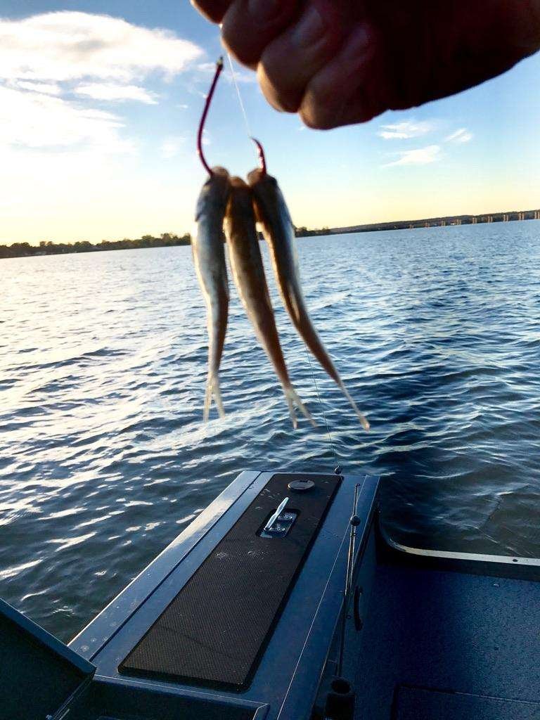 With a smirk, I recalled casually hooking three shad through the eye on the same #8 circle hook.  Holding my bait up for all to see, I said, “this smorgasbord will get me a big one.”